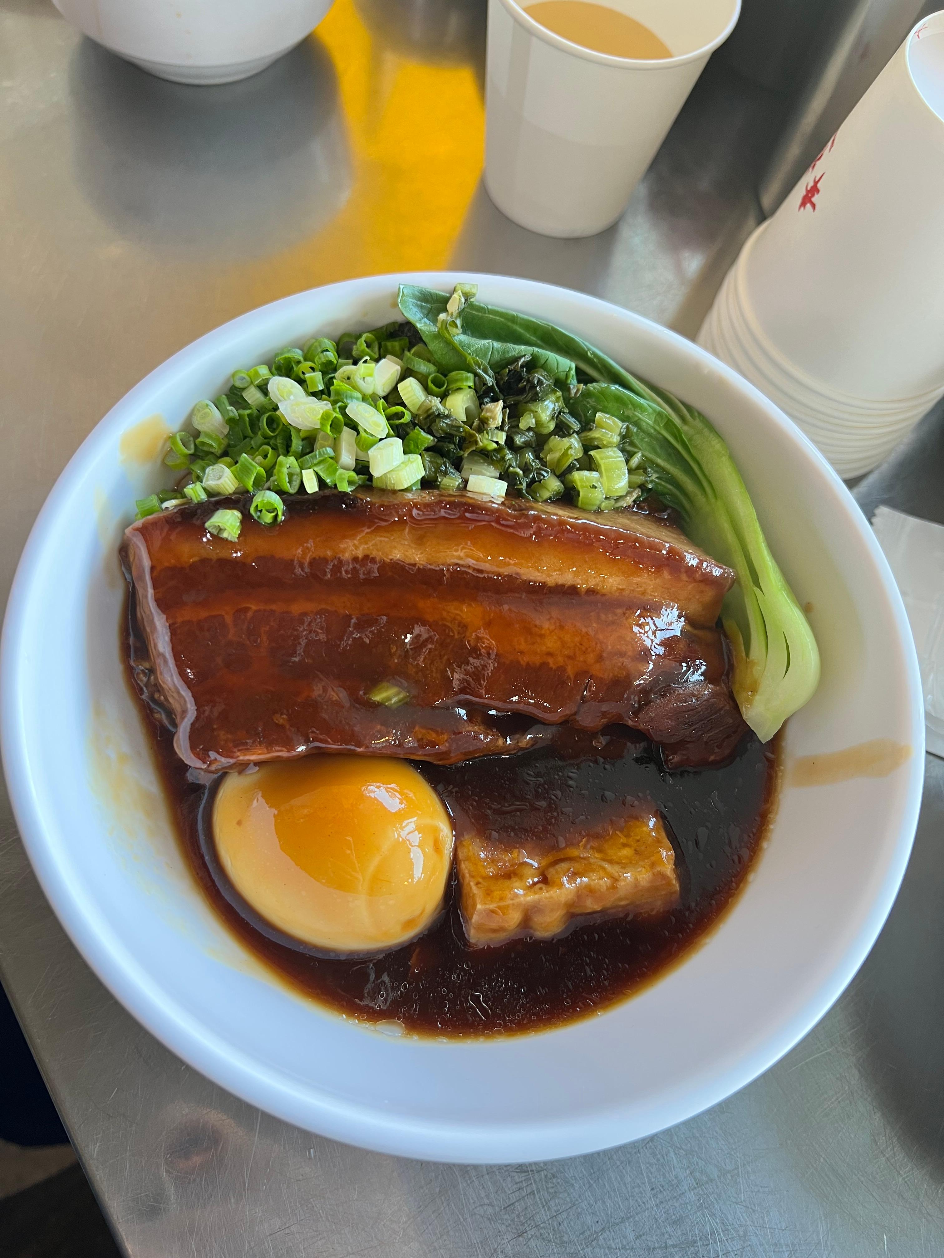 루러우판은 대만식 오향장육 덮밥을 일컫는데 대만 현지에서 제일 맛있게 먹었던 음식이 바로 이 루러우판이다. 대만에서 나의 입맛을 사로잡았던 루러우판은 족발이 올라가 있었는데 싱푸미엔관의 루러우판에는 맛있게 졸여진 삼겹살이 올라간다. 반숙 계란과 두부가 함께 들어가 있어 단백질도 같이 챙기고 좋다.