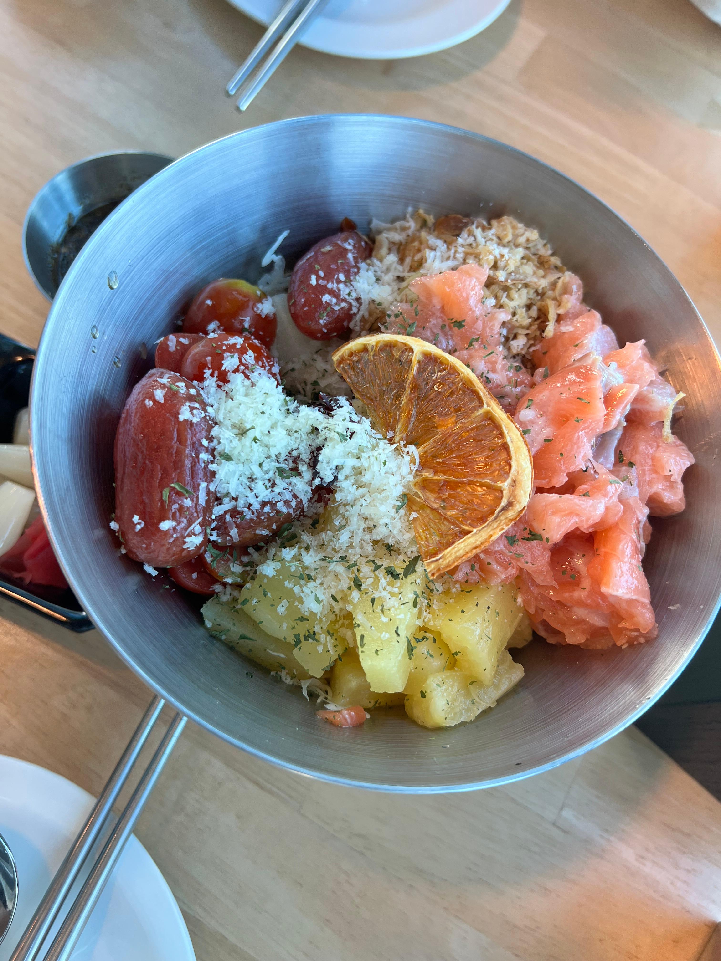 연어를 좋아하는 사람의 경우 추가요금을 내고 연어를 추가해서 먹을 수 있으니 사케동과 또 다른 매력을 느껴보고 싶다면 추천하는 메뉴이다. 다만 비빔밥의 야채구성과 달라서 새로운 맛에 거부감이 있는 사람에게는 쉽지 않게 느껴질 수도 있겠다.