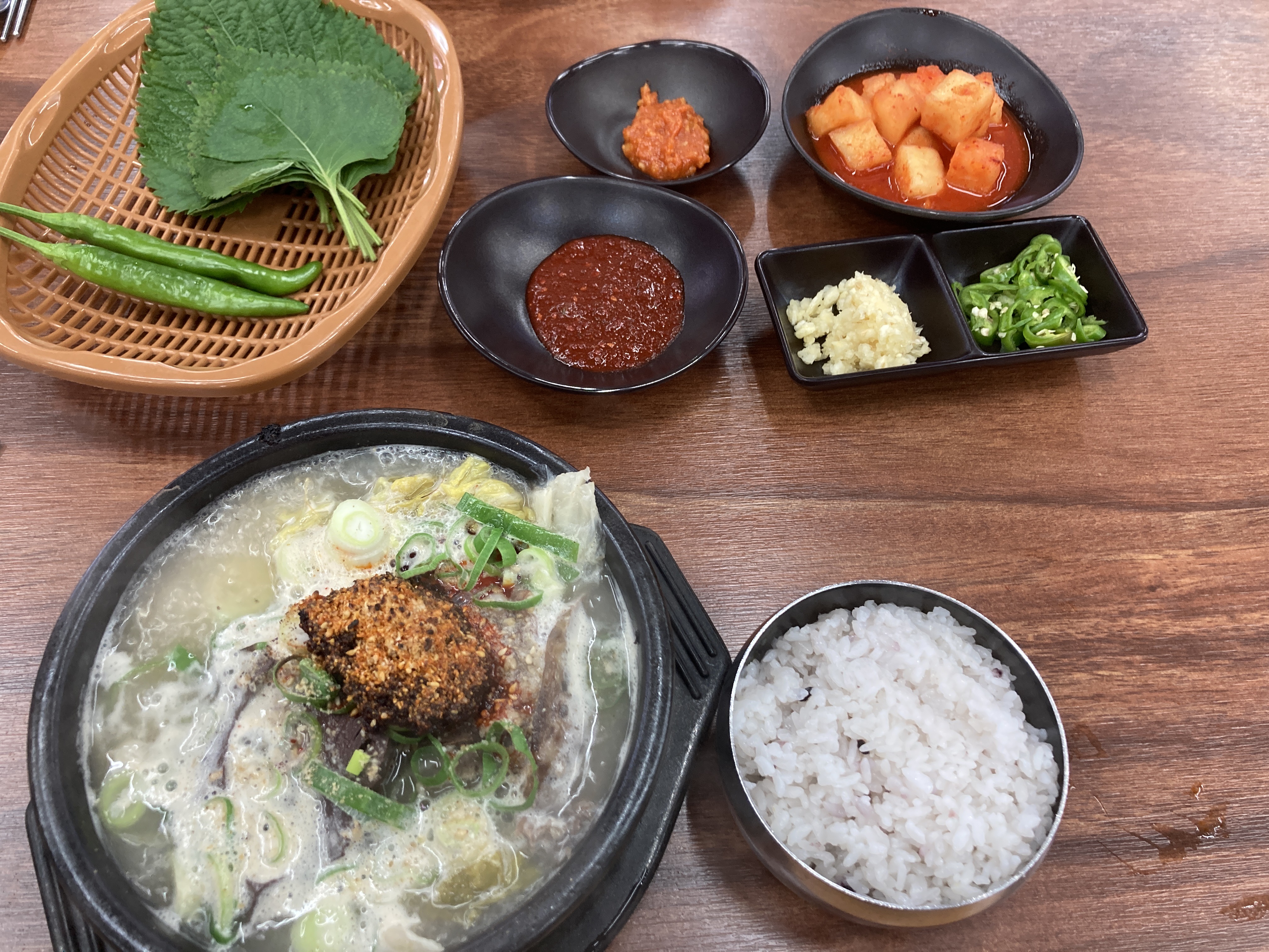 소고기 해장국은 감탄사가 나오는 맛은 아니지만 그래도 아는 맛이 무섭다고 우리가 아는 딱 그 맛을 느낄 수 있는 깔끔한 해장국이었다. 다른 지역도 그러한지 모르겠지만 따로 제공되는 다진 마늘과 다진 고추를 꼭 넣어먹어야 하는데 맛의 깊이가 확연하게 달라진다.