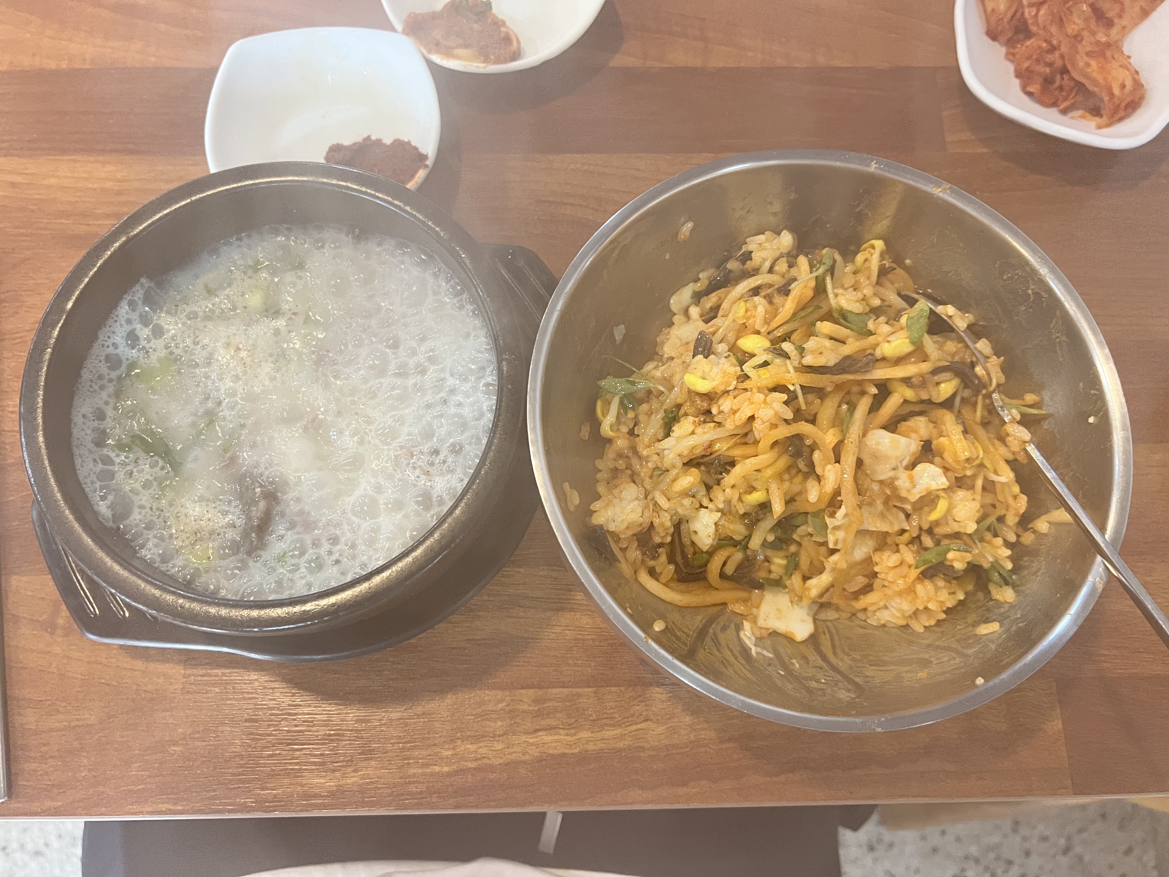 이순애 순대국밥의 가장 큰 매력은 바로 메뉴를 시키면 공깃밥이 아닌 비빔밥을 제공해 준다는 점인데, 이곳을 처음 방문하였을 때 이 사실에 상당한 충격을 받았었다. 내가 좋아하는 순댓국에 비빔밥이 세트로 나온다니!!